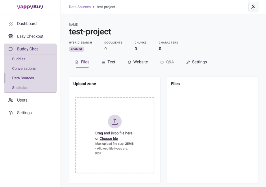You should upload all files here that Buddy uses to provide the user with answers about your business. You can upload either one document or several. Please note which Buddy version you have purchased. This determines the number of pages you can upload here.