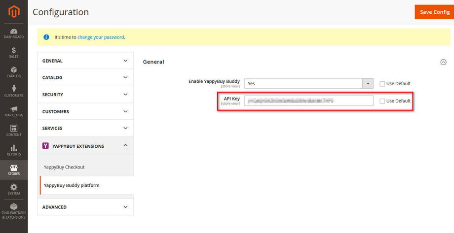 Enable module for your store and set Token you got from yappyBuy Buddy dashboard (see related article how to do that):