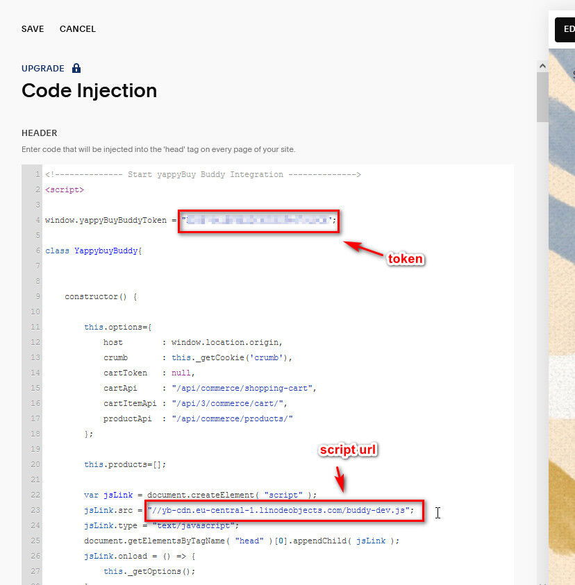 Squarespace allows to use e-commerce functionality of yappyBuy buddy assistant, so you can use two variants of buddy script.